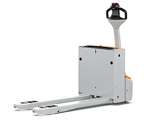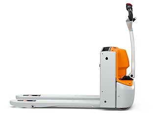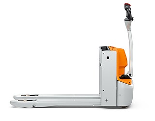 Fits in even the smallest of spaces. Or inside a lorry. The EXH 14 pedestrian low lift pallet truck is so compact and agile that you can manoeuvre it effortlessly around the loading area of a lorry. If necessary, even with the tiller raised – thanks to the intelligently positioned controls. The ergonomics really come into their own when the tiller is in the horizontal position: the extra-long tiller protects your feet while enabling you to maintain a back-friendly posture, and the LED display in the tiller head provides you with all relevant vehicle information at a glance. In particular, the low Ast makes the EXH 14 a manoeuvring marvel in the tightest of spaces. It is robust, powerful on the ramp, boasts excellent lateral stability and performs admirably even in industrial environments. This is also true when used away from home. With a chassis height of just 740 mm, the EXH 14 can be easily transported in a lorry. Its standard 15 A on-board charger and optional lithium-ion technology ensure it is always ready to go.