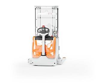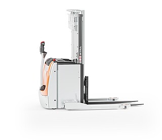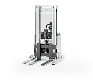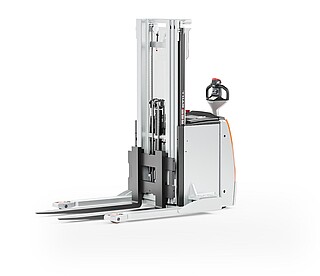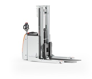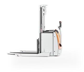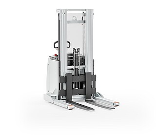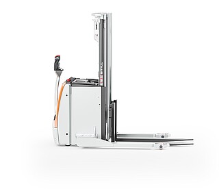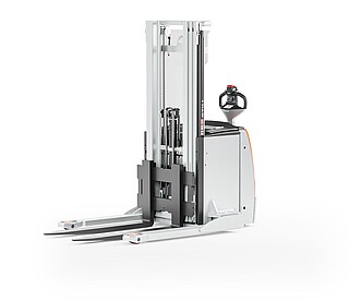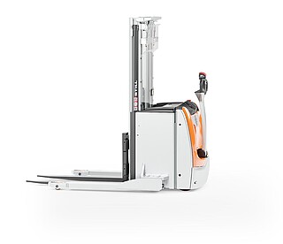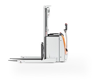 Der Geh-Hochhubwagen EXP 14-20 in drei Worten? Da müssen wir nicht lange überlegen: Stark, flexibel, sicher. Stark wegen des kraftvollen, wartungsarmen Motors und seiner enormen Resttragfähigkeit, dank der er bis zu 2.000 kg schwere Paletten schnell und zuverlässig durchs Lager manövriert. Flexibel wegen seiner freitragenden, verstellbaren Gabelzinken, die das unkomplizierte Handling verschiedenster Ladungsträger ermöglichen. Auch Anbaugeräte können mithilfe optionaler Hydraulikfunktionen genutzt werden. Und besonders sicher macht den EXP 14-20 seine innovative, extra lange, besonders ergonomische und feinfühlige Deichsel mit OptiSpeed-Funktion. Sie garantiert jederzeit den Abstand zwischen Ihren Füßen und dem Gerät und passt die Fahrgeschwindigkeit automatisch dem Deichselwinkel an. In Kombination mit dem Assistenzsystem Curve Speed Control sichert sie die Balance zwischen maximaler Geschwindigkeit auf der Strecke und höchster Sicherheit in Kurven, engen Gängen sowie beim Anfahren und Abbremsen. Zu Sicherheit, Effizienz und einem beeindruckenden Warenumschlag trägt auch das Farbdisplay im Chassis bei. Hier haben Sie alle relevanten Informationen wie den Fahrzeugstatus oder den Ladestand der Batterie immer im Blick – und das dank aussagekräftiger Symbole sogar sprachunabhängig. Optional zeigt die Tragfähigkeitsanzeige zudem die aktuelle Last an. Damit ist der EXP 14-20 der perfekte Partner für einen effizienten, flexiblen und sicheren Warenfluss vom Lasttransport in der Lagervorzone bis zur Bedienung von Regalen.