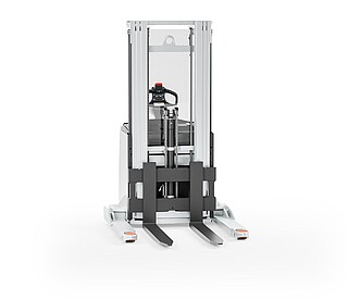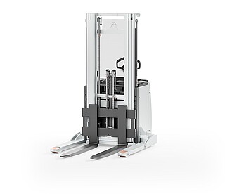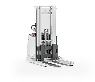 Dank freitragender Gabelzinken können auch geschlossene Ladungsträger einfach aufgenommen werden