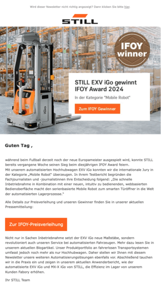 Hier können Sie sich für den STILL Newsletter anmelden.Newsletter Archiv 2025
